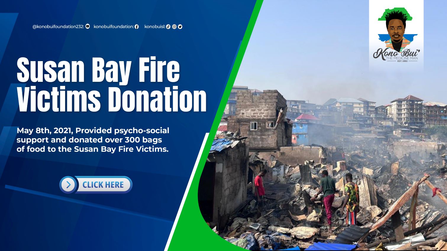 May 8th, 2021, Provided psycho-social support and donated over 300 bags of food to the Susan Bay Fire Victims.